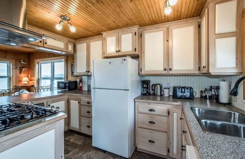 The main floor has a large family room and dining room with plenty of space to relax. Kitchen has all appliances with cutlery, pots and pans - all you need to bring are your groceries. There is a wooden fireplace in the family room where you could enjoy cozy evenings overlooking breathtaking sunsets.