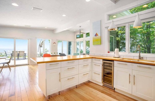 Settle into this peaceful lakeside retreat with direct access to your own stretch of sandy beach. Unwind with premium linens, plush towels, full-size bath products, and a state-of-the-art coffee maker in a full-service kitchen. Watch the waves from your deck and let the lake set the pace for your perfect getaway.