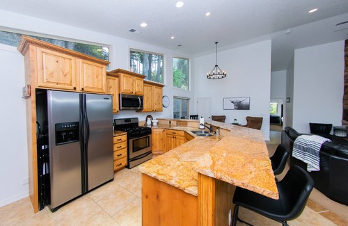 If you don’t want to cook - dining options are close by! Kitchen/living room has Tons of seating-Large Leather sectional, 8 seat dining table, 6 bar stools, 2 comfy chairs at reading nook, USB Port built plug ins, luxury bedding with Novaform Kingsize beds, and 2 premium twin size rollaway beds! Great WiFi connection and you can choose your favorite workspace if you need to log some hours!
