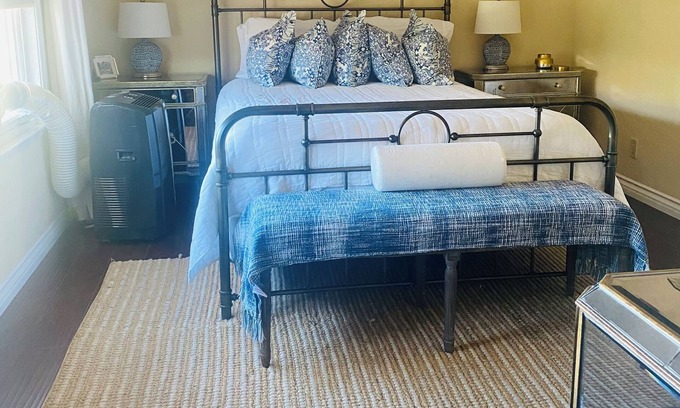Conveniently located off the 5 fwy. Close to all the beach cities. This beautiful decorated bedroom is private with private bathroom. The private bed/bath is separate from home as an in-law suite so it offers complete privacy. It also has a private entrance. Min stay 5 nights. No kitchen privileges. It includes a microwave and fridge, coffee maker, washer and dryer.