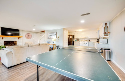 Dive into waterfront fun at this 5-bedroom, 3-bath home in Troutman! Spend the morning on the deck as you watch the sunrise, or take the kayaks out on the lake and enjoy the peaceful surroundings. Want to pan for gold? A trip to Emerald Hollow Mine will deliver! Afterward, return home for a friendly table tennis tournament before gathering on the patio for a BBQ!
