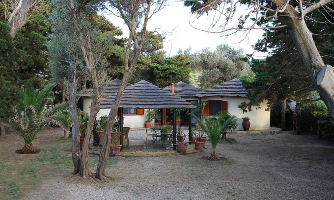 The house is located on the Tyrrhenian coast and is made up of 6 "huts" embedded in a pine forest adjacent to the sea.