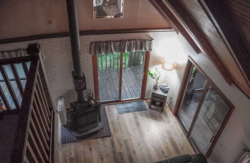 Nestled in a tranquil setting, this cozy retreat features a king bed in the bedroom and an additional loft with two twin beds. There is a sofa bed in the living room that contains two twin beds. Enjoy the outdoors in our 3-season porch! Guests can relax and unwind after a day of exploring. We hope you'll enjoy your stay at our cabin!