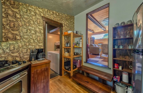With Redwood National Park hiking trails close by and beautiful lagoons and beaches right across the road, the adventures are endless from this wonderful logger cabin! Warm up alongside the wood stoves in your cozy living room or formal bedroom, prepare quick snacks or full meals in your unique, full kitchen, eat or play board games at your dining table, or step outside to your front porch or grassy backyard.