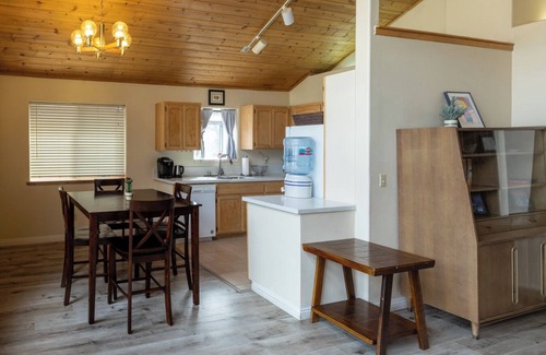 Take it easy at this unique and tranquil getaway. The fact that the living quarters is on the 2nd floor allows for great views of the surrounding Awe-inspiring mountains. Located across the street from Frazier Mountain Park your able to enjoy all the amenities of a park including grills and picnics tables. The minimalistic approach of the home decor was intentional. The Oak Tree Cabin is meant to be an escape from the fast pace nature of modern living.