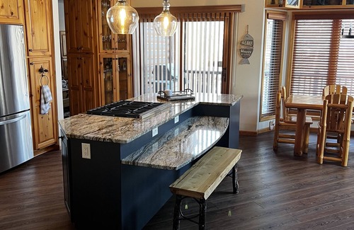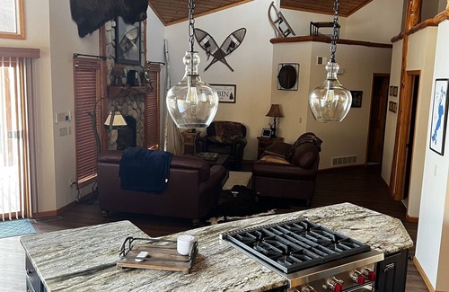 The vaulted knotty-pine ceilings and “up north” furnishings provide rustic charm, while the convenience of new appliances, a fully stocked kitchen, Smart TVs, washer/dryer, central air, wireless high-speed internet, and outdoor gas and pellet grills will make you feel right at home.