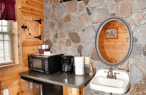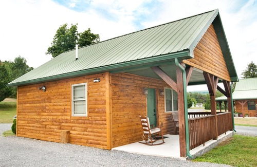 This cabin has one king bed and one sofabed thatcan sleep four adults or two adults and two children. This luxury log cabin features a casual knotty pine interior with a cathedral ceiling, contemporary air conditioning and heating, ceiling fan, a dining area, kitchenette, dish network television, and private bathroom. The cabin also has a small refrigerator, coffee maker, coffee condiments, and microwave. Our modern private bathrooms have a large size stand-up shower (no bathtub). Each cabin has a private front porch with Maryland mountain views that is perfect for relaxing, as well as your own private parking area beside each cabin. For those that cannot do without the internet, we also provide free wireless internet service.