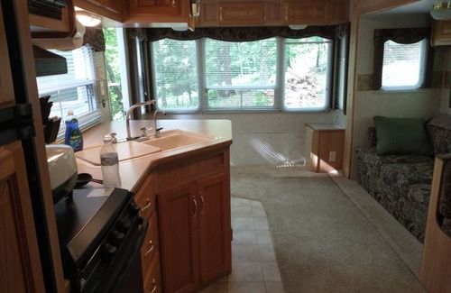 This RV is a private and secluded fully equipped 29 ft camper comes with everything you need to enjoy camping in the woods, you have a fire pit, picnic table fully stocked camper , it has full power hookup water sewer, all you need to bring is your firewood and bring your clothes and food. The camper is located 1.5 Miles from the tail Waters of the gauley River great for rafting kayaking fishing hiking bring your UTV, ATVs and never have to leave our road to ride and bring your pets it is a pet friendly camper this camper is equipped to sleep up to four people only. if you have any questions please notify me prior to booking. thank you so much! This Camper will soon be called a tiny house. we have mad alot of remodeling changes we have added a full size toilet and just added a tankless water heater you will never run out of hot water.
