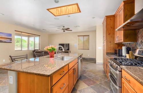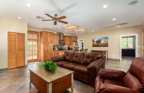 Fully upgraded Casita/Guest House on 1 acre of land with separate entrance! Mature trees across the property create beautiful views and a very private stay from the main house. Enjoy the oversized covered patio dining outdoors, or relax with a cup of coffee or glass of wine next to the fire table. Resort sized swimming pool allows for lap swimming, soaking in the sun, lounging or reading a book in the shade. Waterfall features help set the mood for rest and relaxation. The pool can also be heated for your stay (additional fee) Cook a meal in the fully stocked kitchen, or visit one of the many restaurants just minutes away. Vacation or business travelers, we can accommodate your needs!
