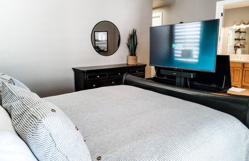 -50” Smart TV in hidden cabinet at foot of bed