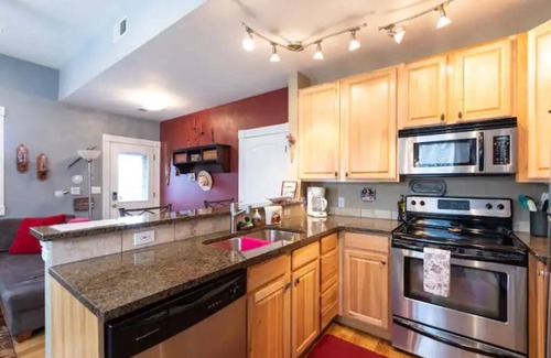 Clean, safe and fun!! Fully furnished private condo in the heart of downtown Golden, 1 block from School of Mines. Walking distance to shops, restaurants, Clear Creek, Coors Brewery, School of Mines, running and biking trails, and more!! Ideal for 4 guests but can accommodate 1 more with extra fee. One reserved off street parking space 30' from condo entrance. Smoke free/pet free. Tourist home license number BCA-42140. CV cleaning plan in place. Early checkin/late checkout possible w fee.