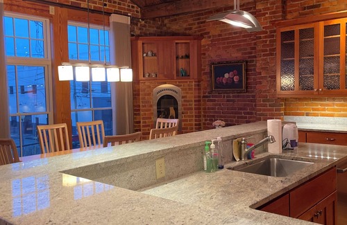Come stay at our exclusive luxury two-level condo home away from home. This stay features river views from Elizabeth City's historic former Ford Assembly building. Feel at home in our condo with personal off-street parking and a private entrance. Located only steps from Pailin's Alley, this condo is within walking distance of all downtown breweries, boutiques, restaurants, activities, and harbor cruise boats.