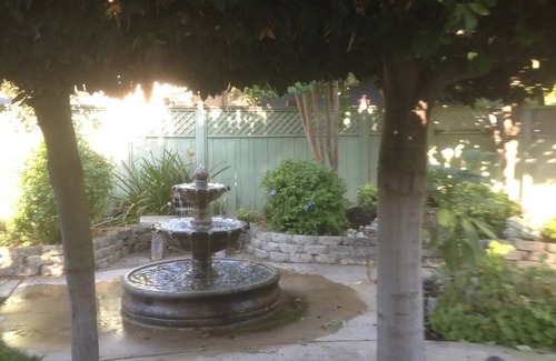 Cozy 3 bedroom European Style Home. Inside of house is tiled; kitchen is upgraded with granite counters; gas oven is Italian make and gas cook top for making those homemade meals. Each wall is insulated for sound/privacy and for cozy comfort. Each room has new beds and bedding, All New! The house can sleep four comfortably, with one room having two twin beds and the others with queen beds. The private backyard is landscaped with Fountain to have a peaceful day/eve. Coffee/Tea and filtered water are for our guests.