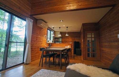 The pleasant scent of cypress will soothe your everyday stress / A private cottage next to a golf course at an altitude of 1100m Enjoy nature in a quiet environment The interior uses a lot of wood and has a KAMIN wood stove made by METOS Good access to Manza Onsen Kusatsu Onsen Karuizawa city area etc