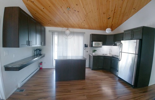 The guest cabin has 4 bunks, a propane stove, fridge and new full bathroom. All bedding and mattresses in both cottages are new and clean. Linens will be washed in hot water between guests. Laundry facilities are available in the main cottage; there is free WIFI available, but the cell service isn't reliable. There is a house phone for local calls and emergencies. The property has a fire pit, brand new 8 person hot tub, and 2 new canoes with lifejackets available for guests as well as bicycles and some back yard games. This property can easily accommodate more than one family , covid restrictions allowing.