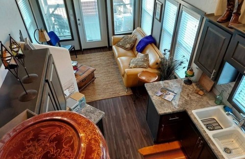 Our guest house is a fully furnished 400 SQ. foot tiny home with full-size appliances, private bedroom, loft, living room including a full bathroom with bathtub and shower. The private bedroom on the main floor features a full bed with a closet. The loft area is open to the living and kitchen area with queen accommodations and a reading/sitting area. Our living area faces west for lovely sunset views, electric fireplace, flat screen TV/DVD player, and includes Direct TV. The property also has access to WiFi. The kitchen is fully functional to either cook a beautiful meal at home or to sit back and relax after a meal in town. If you don't feel like cooking indoors, we have provided a gas BBQ grill and outdoor covered sitting area on the upper deck, while the sunny lower deck features two outdoor lounge chairs and sitting area for lounging or visiting about your day. Our place is an ideal couples retreat and great location to explore Eastern Idaho and Western Wyoming during any season. Our own domestic critters include geese (the three stooges), ducks, peacocks, a few cats and "Jack" our Border Collie for a bit of entertainment.