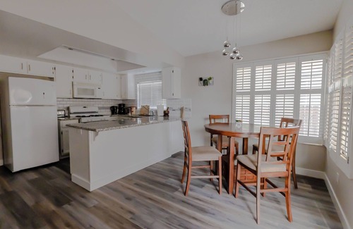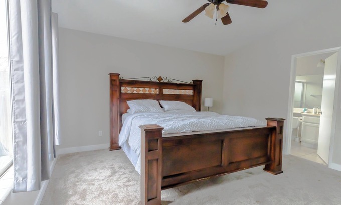 This wonderful home has just been fully remodeled and guests will be able to feel the relaxing and inviting energy from the moment they walk through the front door. With about 1200 square feet, it holds a living room, dining room, kitchen, 1 bedroom with a queen bed and 1 bedroom with a king bed. There are two full bathrooms and each room has its own private access to each bathroom. It also has 2 dedicated work spaces for our guests who work from home. Guests can relax under the gazebo in the private backyard surrounded by hanging lights.