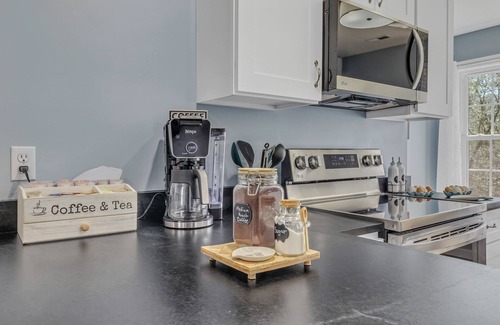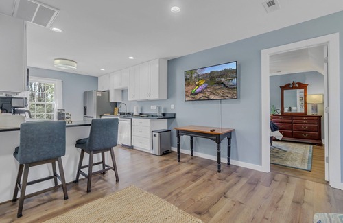 Newly finished apartment with new appliances to include refrigerator with craft ice, stove with built in air fryer, microwave, dishwasher, and stacked washer/ dryer. Fresh paint, tile bathrooms, Alberene Soapstone countertops. New cabinets stocked with pots, pans, baking dishes, spices, and other needed essentials to prepare your own meals. Coffee and tea provided. High Speed internet and smart TV on site. Private mostly wooded lot. Patio with love seat and chairs and fire pit perfect for enjoying your morning coffee or an evening drink. Adult games, family games, and children's toys provided. Along with books for people of all ages. Beach towels for guest use during their stay are also provided. Short walk to dock where you can enjoy fishing, crabbing, kayaking, or just admire the beautiful scenery. Dock has an outdoor shower for your use. Fish cleaning station on dock. Kayaks available for guest use. Picnic table overlooking the creek.