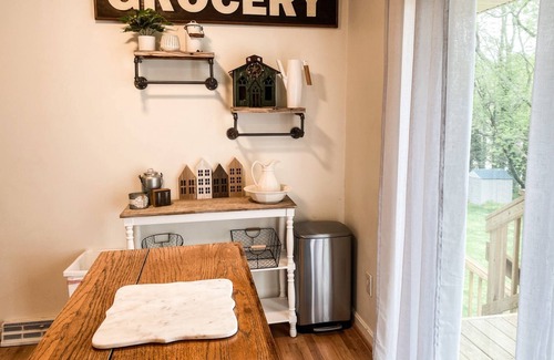 This charming farmhouse cottage in Severna Park is a family-friendly rental with room enough for 2 families traveling together. There is room for 6 adults and 4 kids/teens and a sunny back deck off the kitchen. Bring the family bikes, and hop on the B&A Trail just block from the home, and head less than a mile into the quaint Severna Park town to Big Bean Coffee, Froyo House and Squisito Pizza!