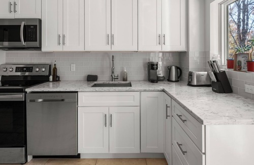 Welcome to your serene escape in the heart of Vermont—a beautifully transformed wood barn that promises an unparalleled retreat into nature. This charmingly renovated one-bedroom, one-bathroom haven combines rustic allure with modern comforts to create the ultimate outdoor getaway. The living room is equipped with a Smart TV with streaming options, a remote control powered fireplace, board games, and comfortable lounging. The kitchen is fully stocked with everything you'll need plus a dishwasher, washer and dryer for laundry.