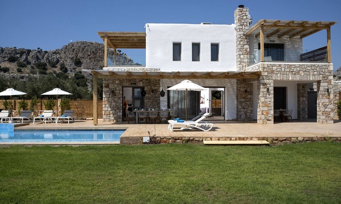 Best-rates for the Pefkos villa starts from $364 per night with includes Pool, TV, Private Pool, Internet, Kitchen, Ocean View, Balcony/Terrace, Oceanfront, Security/Safety, Sports/Activities, Bedding/Linens, Child Friendly, Air Conditioner, View, Wellness Facilities, Fireplace/Heating, Parking, Accessibility, Barbecue/Outdoor Cooking, Laundry with all other amenities. Perfect for Weddings is committed to ensuring every guest experiences a comfortable and extraordinary stay, whether planning a romantic getaway, a honeymoon, a pet-friendly stay, or celebrating with the entire wedding party.