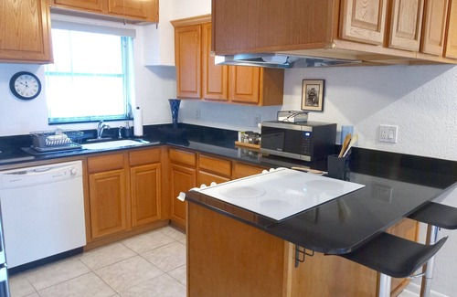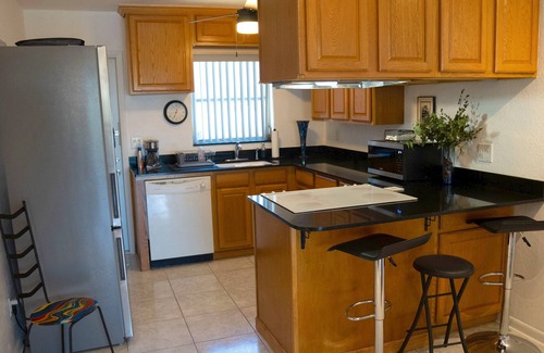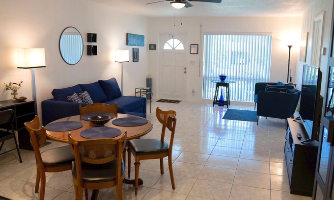 Beautiful landscaped views, designer art 2br-2ba with sofa bed in living room, air conditioned with walk in closets, full kitchen with Microwave, Air Fryer, full size oven, dishwasher, wireless Wi-Fi, both antenna and HBO Max and other free movies, and all dishes, pots and pans and accessories provided, near beach, BBQ, private patio and yard, quiet neighborhood. 55" flat screen TV, full laundry room with washer and dryer, ironing board and iron, beach towels, beach umbrella and chairs, on site parking and car port. Walking distance to restaurants, dry cleaner, grocery stores, fast food, beauty shops, massage parlors, gyms, gas stations, 2 minutes to Lauderdale by the Sea beach and more.