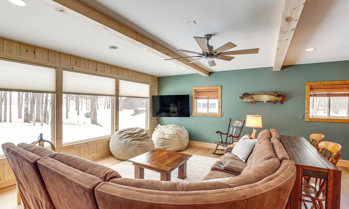 This 2-bedroom, 2-bath vacation rental offers lakefront fun with 100+ feet of shoreline on the 800-acre Pike Lake! Catch fish right off the dock for an al fresco dinner, then wrap up the evening under the stars by the crackling fire pit. Located just 22 miles from Minocqua and close to trails, boat launches, and year-round recreation, this home is ideal for families looking to create lasting memories.