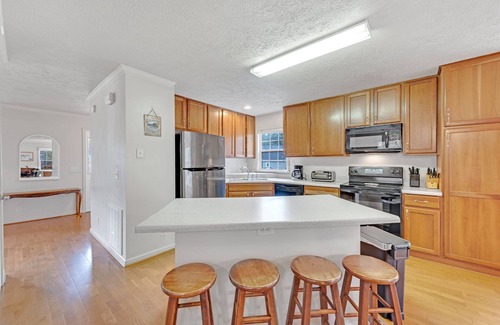 Includes extensive kitchen amenities, washer/dryer, microwave, wood-burning fireplace, central AC, Directv. Basement game room includes ping pong, air hockey, TV. House is stocked with board games, DVDs, books.