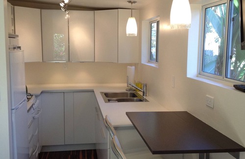 The secluded detached, purple door cottage in the enchanted garden offers a brand new, fresh and fully furnished smoke/pet free environment. This cottage is a unique tropical beauty with lush serene garden and private entrance. A double wide lounge day bed for you to enjoy nature and read and dream. As well as a propane fire pit in the outdoor living room and other beautiful outdoor sitting areas are provided for you to enjoy! Wake up to the birds chirping!