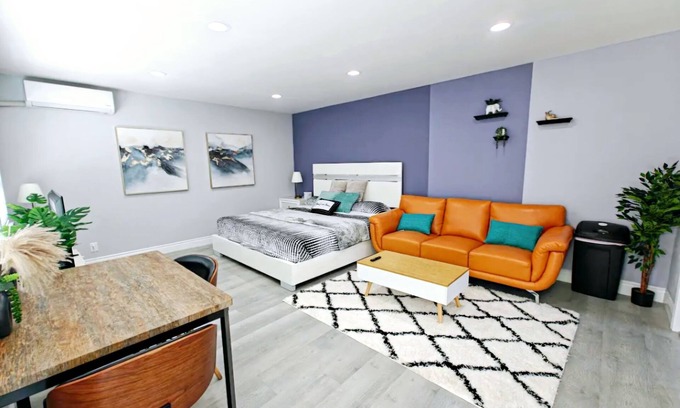 Located in Arcadia,20 minutes from downtown LA, enjoy what this studio has to offer. This adorable 1-bedroom studio features a cozy king bed, a fully equipped bathroom with a shower and hair dryer, and convenient amenities like a washing machine, heating, AC, and WiFi. Enjoy all that Arcadia has to offer when you stay at our place.
