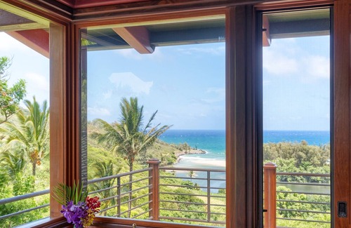 Private estate on 12 lush acres, ocean views, path to beach, main house plus two guest cottages! is located in Kilauea. Private estate on 12 lush acres, ocean views, path to beach, main house plus two guest cottages! provides accommodation, featuring Entertainment, TV, Balcony/Terrace, among other amenities. This House features Entertainment, TV, Balcony/Terrace, to make your stay a comfortable one.