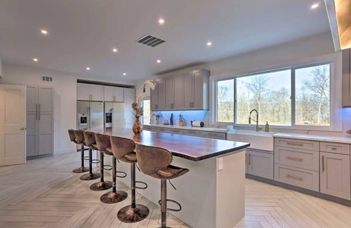 Enjoy the enchanting surroundings in this luxurious retreat. Custom furniture, unique decor and spacious kitchen will make you feel right at home weather visiting beautiful Greenwood Lake for boating, nearby skiing or planning a milestone event. Reunions, birthdays or small weddings are a perfect fit with unmatched privacy all within 1 hour of NYC. The game room features a custom 16' shuffleboard table, billiards, darts and more. There is also an indoor pickleball court, sauna and cold plunge tubs.