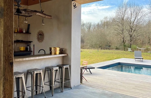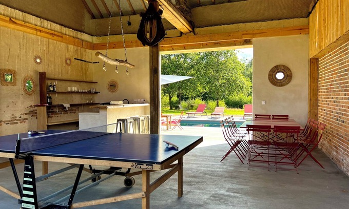 🏊 Private pool with a fully equipped pool house: summer kitchen, plancha, large tables, ping-pong, sound system, light bar...