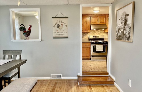 The Happy Rooster is a 1,254sqft super cute cottage, newly remodeled, nestled in the rolling hills of Franklin County, by Smith Mountain Lake. Great wifi! Brand new 7 person hot tub! Enjoy various fruit trees in front yard during season. Spacious porch to enjoy sunrise, sunset and the sounds of nature. Both kids and adults love to enjoy the interaction amongst the vast array of farm animals including chickens, horses and miniature cows. Spend the evening by the firepit or inside playing one of the numerous games available for all. Relish on a mile or two peaceful stroll, surrounded by farms to the end of the cul-de-sac. 10 minutes from Smith Mountain Lake, 15 minutes to Rocky Mount. 10 minutes to Blackwater Junction and the Salt Spa. Within 20 minutes of Copper Cove Golf Course & Waters Edge Golf Course. 18minutes to Harvester Performance Center, 10 minutes to Magnum Point Marina. Also enjoy several spas and wineries in the area.
