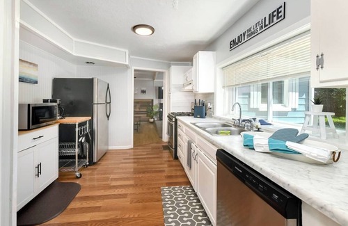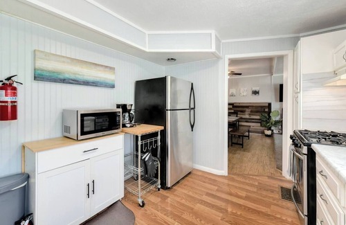 The kitchen is fully stocked with dishes, flatware, pots & pans, appliances (blender, toaster, crock pot, etc). Wifi is fast and connected to the ROKU smart TV for easy viewing. A desk is provided for dedicated work time and extra linens are around the home. It's ready for your extended stay!