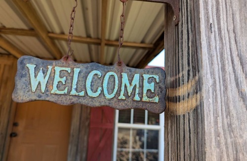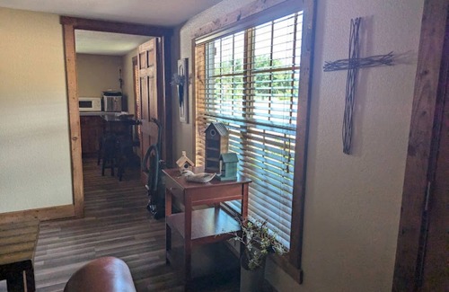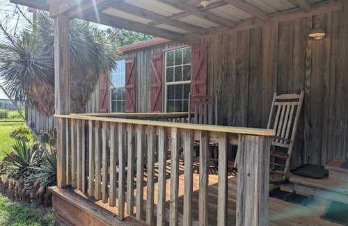 The bunkhouse is a cozy countryside retreat set on a Longhorn Cattle ranch. This charming home features 2 queen beds and 1 sofa bed. 2 covered porches with rockers & patio set for enjoying drinks or cooking meals on the outdoor grill. It has 2 ponds and 1 lake that you can fish in. Fish are fed 2 times daily. Ask for schedule if you want to observe the fish feeding. We have carts to reserve to rent for a daily rate. Perfect for bird watching. Space for hiking and enjoying the beautiful sunset & sunrises.