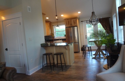 This beautiful home.. FULLY FURNISHED, all on one level, very private, clean and well cared for. This guest home.. has no close neighbors, has high Cathedral ceilings and has special pricing for an extended stay. WE ARE NOW OFFERING AN EVEN BETTER RATE FOR A THREE OR FOUR MONTH STAY. STARTING IN DECEMBER AND THROUGH APRIL. PLEASE ASK FOR DETAILS. WE CAN DO A GREAT MONTHLY RATE WITH EVERYTHING INCLUDED. Smart TV, Cable, High Speed internet, WiFi, all utilities including heating. water/sewer.. FULLY FURNISHED. Charlie and I are committed to having the home very clean, and sanitized between guest visits. We want our guests to enjoy comfort and peace of mind. The home has everything you would need for a get away or just some quiet family time away from the hectic world. This is a great spot for a professional couple or suitable for a small family that would like to stay for two weeks or longer. It's also close to PSU and MT NITTANY MEDICAL CENTER. If you're wanting to buy a home in the State College area.. this might be a great place to stay while you're looking. YOU CAN STAY FOR TWO WEEKS OR LONGER. The home has tile flooring throughout . The tile flooring is a wood grain planks. Heated flooring in bathroom. Carpeted bedrooms. All new stainless appliances, granite counters in kitchen and baths..High Cathedral ceilings, open floor plan, lots of closets, 2 full baths, 3 bedrooms. One is perfect for an office. New Front load washer and dryer in unit. Large deck overlooks the beautiful Spring Creek #1 Trout Stream in PA. Property is very Private with no one close by, it has a beautiful setting. The large heated pool is open May through September and is a private pool for the guests use. The private hot tub is wonderful and is open year round. We commonly see Bald Eagles visit the creek and nest close by. No close neighbors and plenty of off street parking for two to three cars. Electric Heat pump and Central Air-conditining is in the home.. Beautiful big energy efficient windows that provide lots of great lighting and beautiful views. It has a great fire pit with lots of wood for a cozy fire and a perfect spot to roast some marshmallows The hot tub seats 5 to 6 with a very nice water fall and colored lighting. Lots of jets to help sooth tired muscles. It's a perfect location to State College.. only a couple minutes to down town, center. The home is only a couple miles to PSU STADIUM and MT. NITTANY MEDICAL CENTER. It has Great walking trails within a mile of the home, a nature preserve close by.. a large meadow and Spring Creek in the bark yard, Spring Creek Park is close by, close to all that State College offers. Although the home can easily accommodate 6 people with the 3 bedrooms.. for short stays.. If your wanting to stay an extended time you might prefer a smaller group. For extended stays 2 to 4 people works very well. Home is very clean, well sanitized, and provides all that you would need except your food.