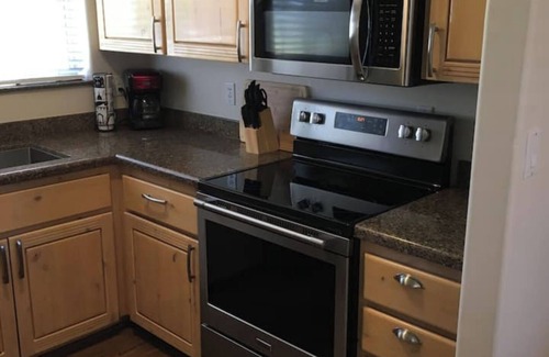 This property features a remodeled full kitchen with granite counter tops, custom wood flooring, king size bed in the primary suite and new Queen sleeper in the living space. There is plenty of storage space in the primary closet and living space linen closet and a full sized laundry with hanging space. The newly renovated bathroom gives you a walk in shower and new home feel. Cable and WiFi in both the primary bedroom and living space keeps you connected. A dedicated work space with desk and executive chair offers you a comfortable spot to work when needed.