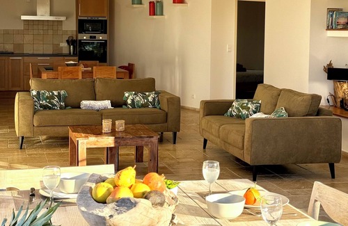 Overlooking the bay of Tizzano, you can enjoy during your stay a very spacious apartment with natural tones and decorated to make you relax. The property that you personally is reserved is secure and access is closed by a gate. Enjoy the garden taking your breakfast for a moment of relaxation or an aperitif and prepare the day's catch on the plancha, all in keeping an eye on a beautiful view of the Mediterranean Sea.