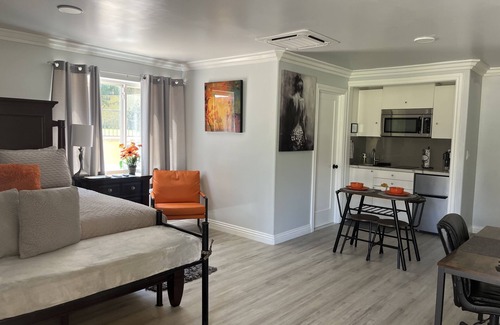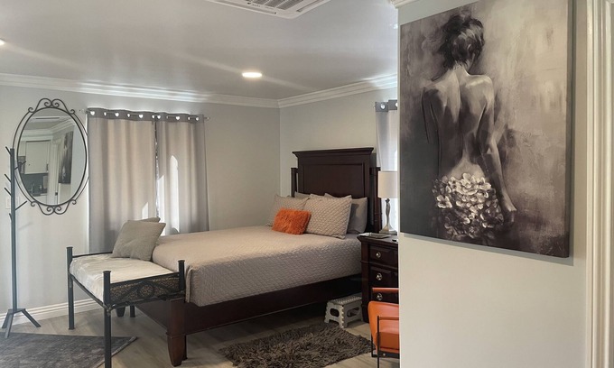 New Luxury, Modern, beautiful, cozy stylish mini private studio in exclusive area of Phillips Ranch. Studio has bath & big closet, dining table, study desk. The studio is attached to the main house with its own Private entrance. Beautiful and unheated pool. Situated in a cul-de-sac. Quiet neighborhood. Close to all freeways, schools, hospitals. shopping, parks, restaurant.