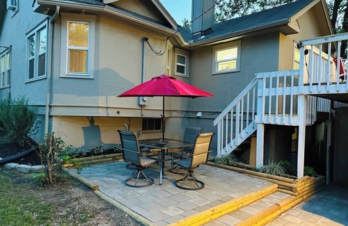 This is a freshly remodeled guesthouse!! It has a fenced in back yard complete with deck, fire pit, and outdoor seating.