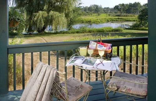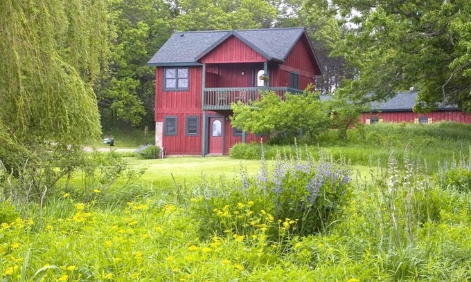 Combining the elegance and luxury of a tasteful bed and breakfast with the intimacy of a private guesthouse. Find zen on the nature trails at this 50 acre conservancy where you'll spot wildlife, rare birds, restored prairie, native wildflowers, wet meadows, flowing waters, oak savanna and towering pines. Tastefully decorated and comfortable guesthouse with a jacuzzi tub, gas fireplace, bathroom, dining area, king bed, and a peaceful covered porch on a wooded hillside setting.