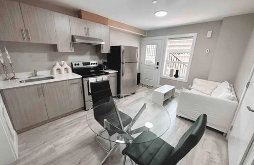 Welcome to our brand new and modern private guest suite in the heart of Vancouver. This stylish and well-appointed accommodation offers a comfortable and convenient stay for travelers seeking a home away from home. As you step into the suite, you'll immediately notice the contemporary design and attention to detail. The open-concept living area is tastefully furnished with modern pieces, creating a welcoming and inviting atmosphere. Relax on the comfortable sofa while enjoying the natural light that fills the space. The fully equipped kitchen is a standout feature of this suite. Whether you're a culinary enthusiast or simply prefer the convenience of preparing your own meals, you'll find everything you need here. From a stove, oven, and refrigerator to a microwave, toaster, and coffee maker, all the necessary appliances and utensils are at your disposal. Whip up a delicious meal or brew a fresh cup of coffee to start your day. The bedroom is a tranquil retreat, boasting a cozy and plush bed that guarantees a restful night's sleep. The tasteful decor and soft lighting create a serene ambiance, ensuring you wake up refreshed and ready to explore the city. For your entertainment needs, a smart TV is provided in the living area. Catch up on your favorite shows or stream movies for a cozy night in. Stay connected with high-speed internet access throughout the suite, allowing you to easily browse the web or attend to any work-related tasks. The private guest suite is conveniently located in Vancouver, offering easy access to the city's attractions, restaurants, and shops. Whether you're here for business or pleasure, this modern and well-equipped accommodation provides a comfortable and enjoyable stay. We look forward to welcoming you to our private guest suite. Experience the perfect blend of modern comfort and convenience during your stay in this vibrant city.