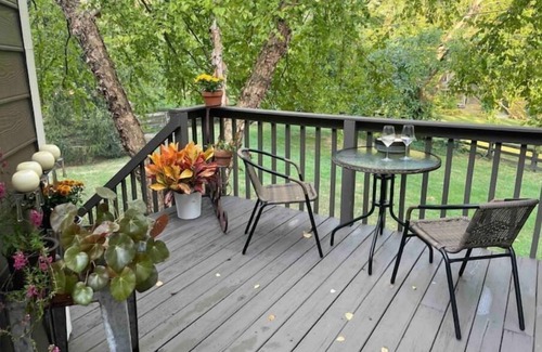 Welcome to my warm, cozy home in a tucked away older neighborhood lined with mature trees displaying beautiful color foliage in the fall, and fragrant trees in the spring - literally 3 minutes from Keeneland and the Airport. The guest wing is private and separated from the rest of my home. In the upper bedroom/greatroom you'll feel like you're staying in a treehouse, and you'll even have your own deck area to enjoy the spray of color and a meandering creek. A literal sanctuary.