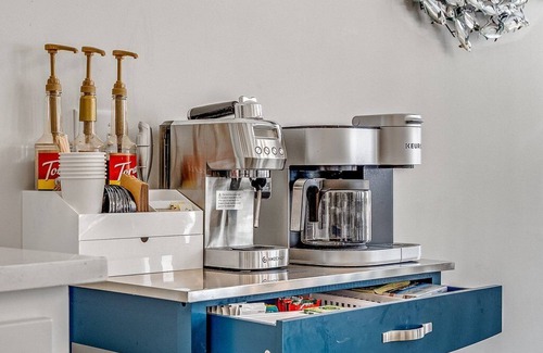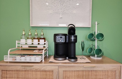 Start your day with a perfect cup of coffee or tea. Choose from the espresso machine, French Press or the Keurig Duo, with complimentary K-Cups provided. You'll also find a selection of tea, sugar, sweeteners and creamer to make your morning just the way you like it.