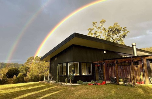 Indulge in luxury at our serene 40-acre property, 7 min to town & 20 min to many local beaches. Enjoy stunning views of nearby mountains & farm animals roaming the rolling hills surrounding our stylish modern 100% off-grid home, complete with resort-style pool & 8 person hot spa. With its stunning views and ample space, our property offers a private oasis perfect for entertaining.
