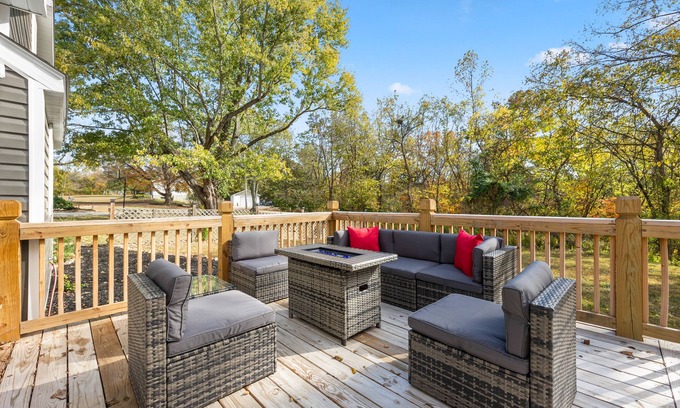 Step outside to our generous back deck, furnished with a comfortable sectional patio set, a propane fire table, and a gas grill, all ready for your outdoor gatherings. Our private yard often welcomes visits from local wildlife, adding an extra layer of serenity to the atmosphere. 🌳🏡🍔