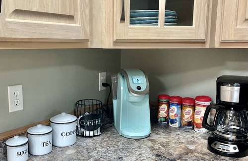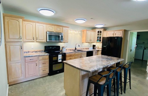 Both bedrooms offer one queen size bed and large closets. A King Koil luxury queen air mattress is also available and easily fits in various places and inflates in 2 minutes. The air mattress along with bedding is stored in bedroom 2 closet. All rooms are fully furnished offering the convenience to make our place your home away from home. The spacious, fully stocked kitchen is ready for preparing breakfast ahead of a busy day or enjoying the evening in making a home cooked meal. The cabin sits at the end of a private drive with multiple parking spots. Outdoor amenities include, charcoal grill, outdoor seating, and fire pit.