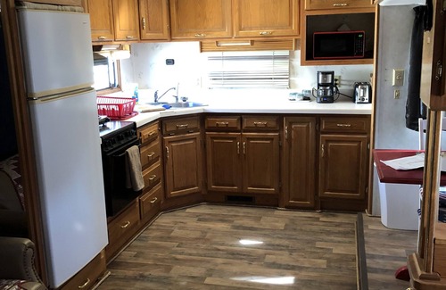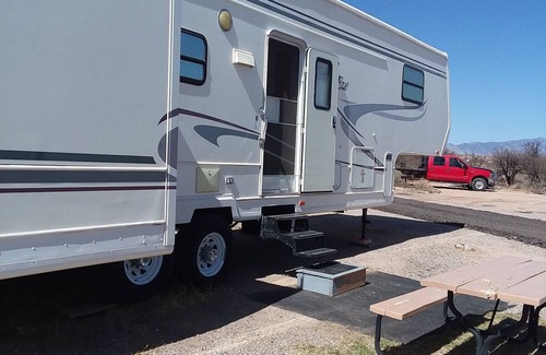 Our 5thWheel RV offers you a full bathroom, kitchen and bedroom with everything you need to make your stay comfortable and convenient. Hang out in your own space, take a walk in on the walking trails right out you door, golf just 2 blocks away, or take a day trip to Tombstone, Bisbee or Kartchner Caverns State Park.