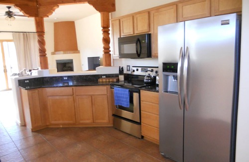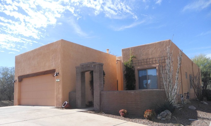 This is an awesome vacation home that you will LOVE! It is a free standing home with comfortable furnishings and well stocked supplies. Enjoy this special community from our beautiful home in Barrio De Tubac, a small community within walking distance of the artist village in Tubac, and less than a mile from the Tubac Golf Resort. As frequent VRBO guests ourselves, we know what we enjoy when staying in other’s homes, a designer home, geared towards comfort, with well-stocked supplies. We have picked out every item, from soft sheets, to bathrobes, to smart TVs that allow you to access your accounts with Netflix, Hulu, Amazon, etc with your comfort and enjoyment in mind. (No cable TV) You will love our 2 bedroom, 2 bath home with its’ 10 foot ceilings, gas kiva fireplace, surround sound, jetted tub, walk in shower, well stocked kitchen with granite countertops, stainless steel appliances, private court yard, and back patio with comfortable seating and beautiful sunset views. Of course high speed wireless Internet is also provided, as well as two bikes, helmets and lock.